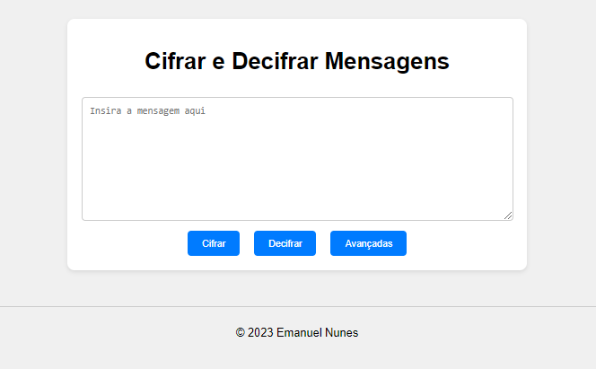 Surgiu por puro divertimento, Combina o uso de cifras classicas como Cesar e Vigenère juntamente com valores PRNG e permutações em modo de Cifra CBC. Esta pagina não deve ser usada para dados sensiveis mas ainda assim serviu para aprofundar conhecimentos em JavaScript.